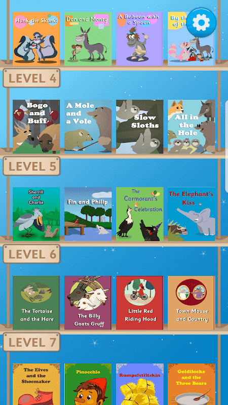 Com 8 níveis e 32 livros, as crianças podem progredir em seu próprio ritmo, começando com palavras simples, passando para frases completas e, finalmente, lendo uma história completa.