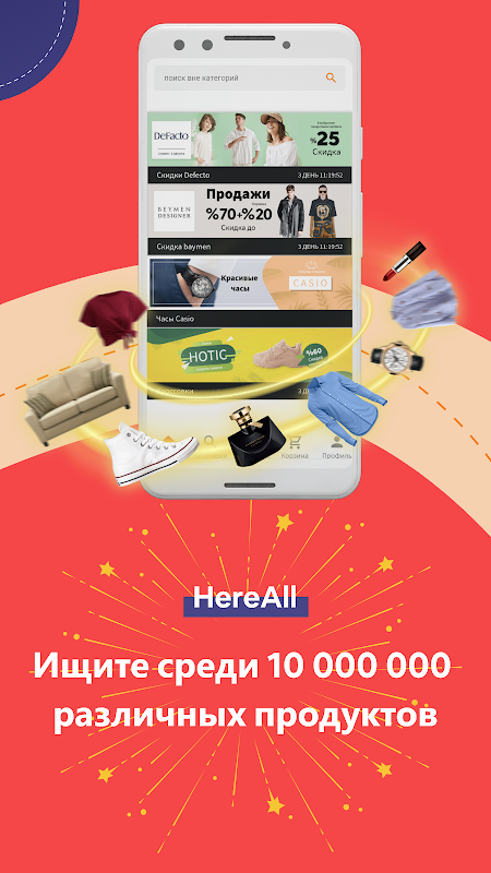 С уникальным мобильным приложением HereAll вы сможете делать покупки в любое время и в любом месте! Найдите продукт, который вы ищете, среди миллионов продуктов и сотен категорий, пользуйтесь преимуществами и кампаниями для мобильных устройств благодаря мобильному приложению HereAll.