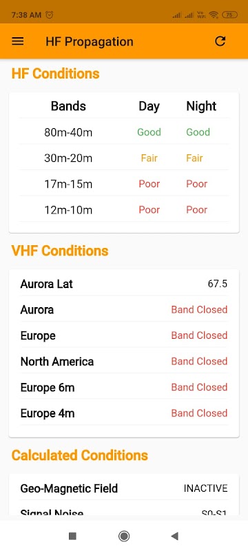 HF Propagation App usa alimentação de dados solar de hamqsl.com. As previsões de propagação de HF são calculadas usando os dados disponíveis. As condições reais em sua localização dependerão de muitos fatores adicionais. A única maneira infalível de determinar se as faixas estão abertas é entrar no ar. Visite hamqsl.com para saber mais sobre como interpretar os dados neste aplicativo.