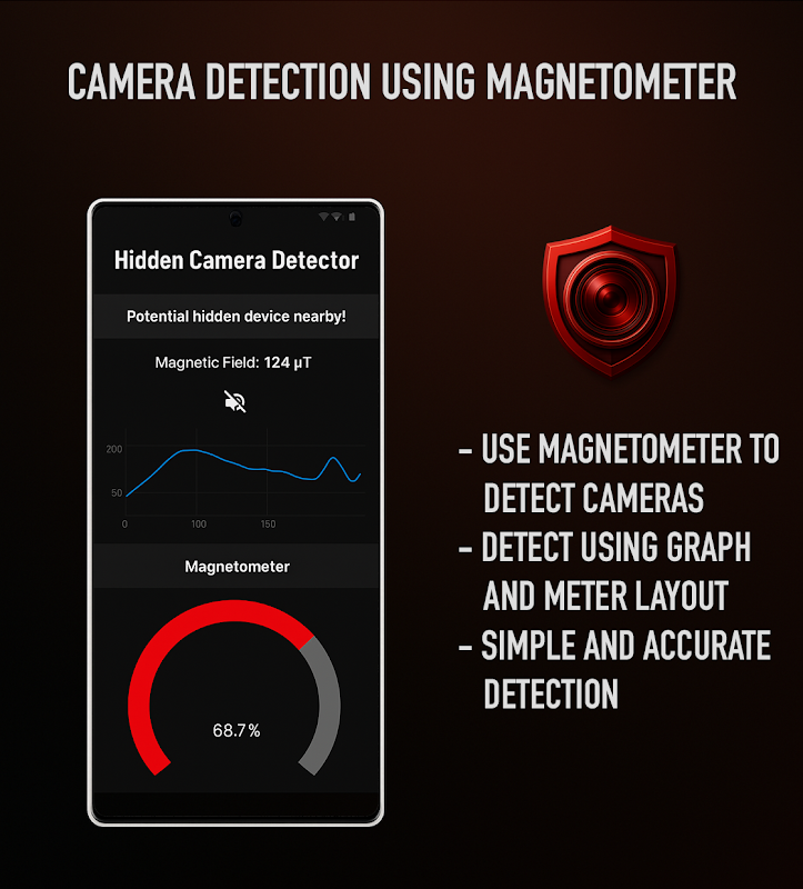 No mundo atual, onde as preocupações com a invasão de privacidade são cada vez mais prevalentes, nosso aplicativo surge como uma ferramenta indispensável para detectar câmeras e dispositivos ocultos. Com a proliferação de dispositivos de vigilância em miniatura capazes de gravar e monitorar discretamente, indivíduos e empresas enfrentam riscos aumentados de vigilância não autorizada. Este aplicativo fornece uma defesa crucial, permitindo aos usuários detectar câmeras e microfones ocultos em vários ambientes, como residências, hotéis, escritórios e espaços públicos.