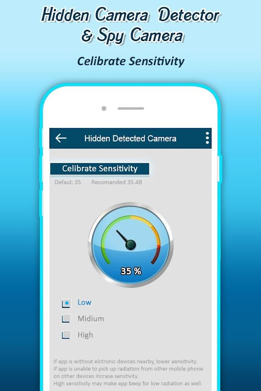Protect your privacy from spy hidden camera lenses. This app is a tool to help you detect disguised camera lens that you suspect are present in a room. Equivalent to camera detector mobiles, it tries to detect using the magnetic sensor of your android device If magnetic activity seems similar to that of camera, this app will beep and raise alarm for you so that you can further investigate.
