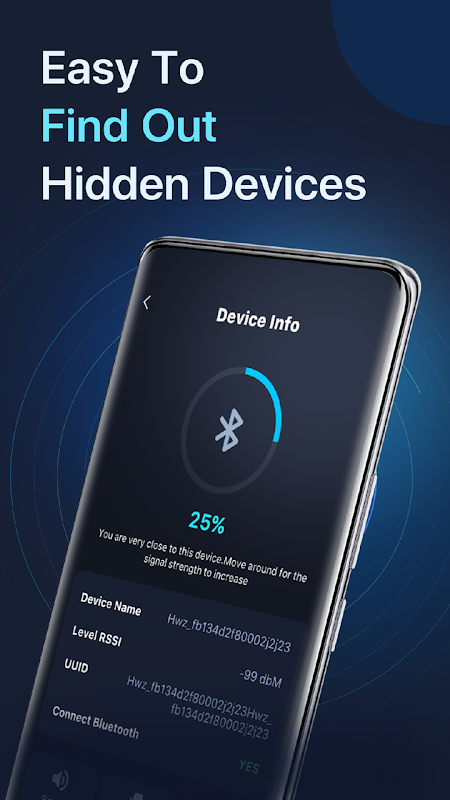 - Bluetooth Finder, BLE Scan encontra dispositivos azuis perdidos. Ajuda você a encontrar dispositivos Bluetooth perdidos, como fones de ouvido, relógios, celulares ou tablets. Quando você estiver dentro do alcance do sinal Bluetooth do dispositivo perdido, haverá um som e uma vibração para lembrá-lo. Se ainda não conseguir encontrar o dispositivo com sucesso, você pode usar a função Localização para encontrar o dispositivo no mapa. O bipe e a vibração ajustarão a velocidade de acordo com a força do sinal Bluetooth. Você também pode ver o nome do dispositivo, nível RSSI, UUID e se o Bluetooth está conectado. O Bluetooth Finder irá ajudá-lo até encontrar o seu dispositivo.