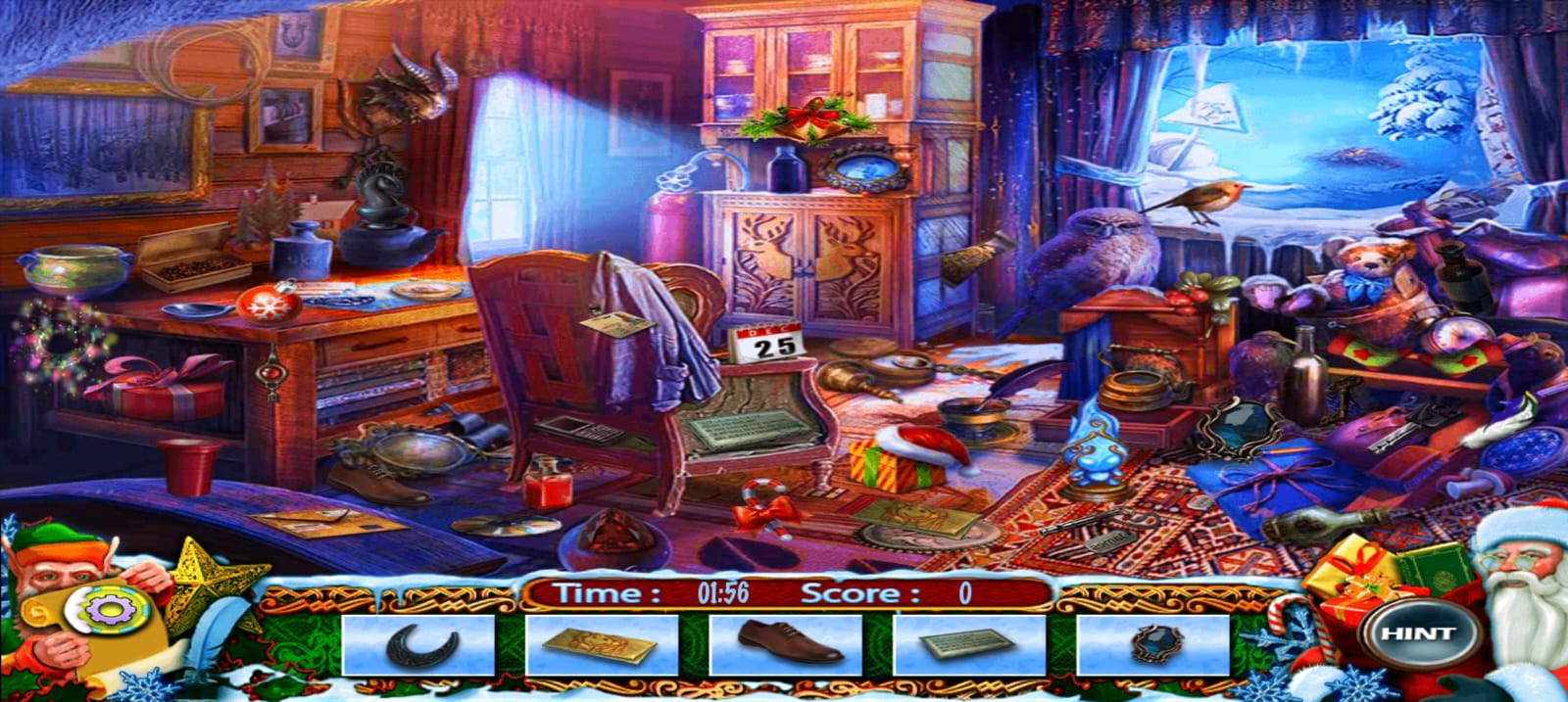 A segunda etapa da busca por objetos ocultos: encontre a diferença nos jogos de quebra-cabeça e as diferenças entre as imagens. Você precisa procurar o objeto oculto e encontrar o quebra-cabeça imediatamente!! Há um bônus quando você resolve o quebra-cabeça da maneira certa e precisa encontrar os brinquedos de Natal escondidos nas fotos