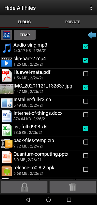 - Você pode selecionar vários arquivos para ocultar ou unhidden