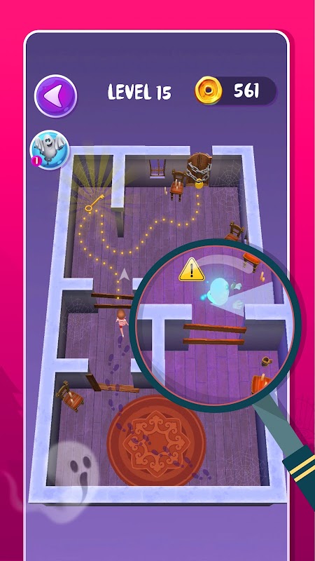 À medida que você joga, colete moedas e tenha a chance de girar a roda e ganhar prêmios. Obter novos truques de jogo, como receber tempo extra, congelar a habilidade fantasma, ligue as luzes ou pegue uma lanterna para descobrir a saída.