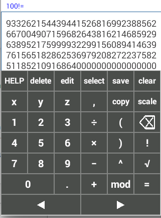 Este aplicativo é uma calculadora de precisão arbitrária. Você pode calcular números grandes, fatoriais, quadrado