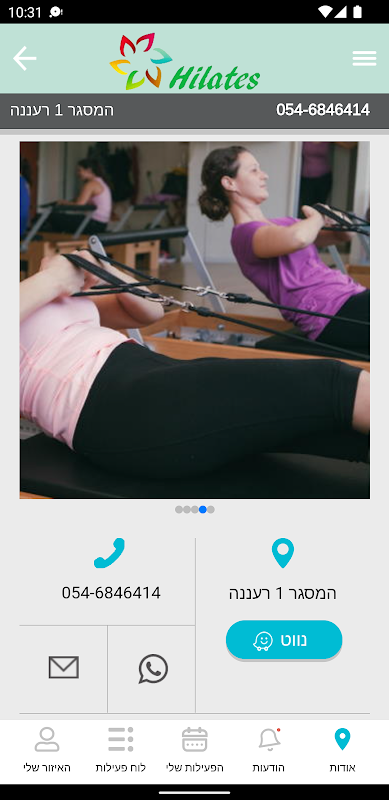 Um aplicativo que permite que você se inscrever e cancelar aulas Hilates estúdio on-line
