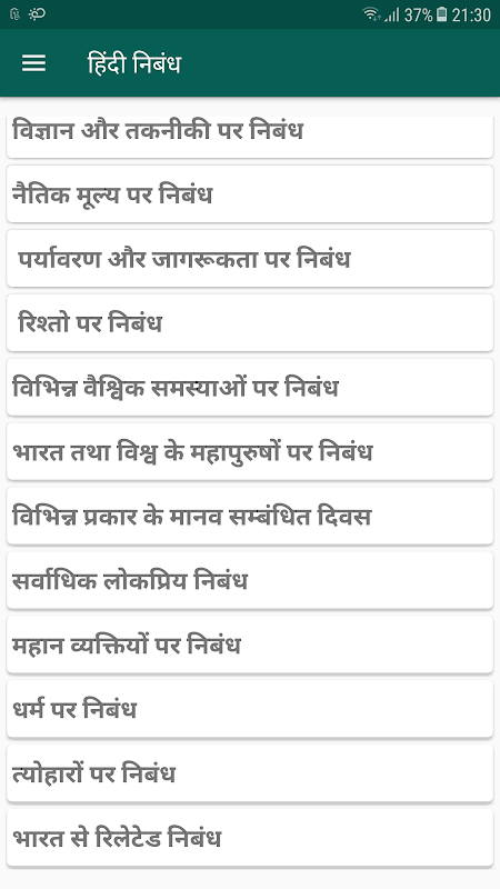 Informações sobre Hindi Essay (हिंदी में निबंध )-1500 + निबंध APK