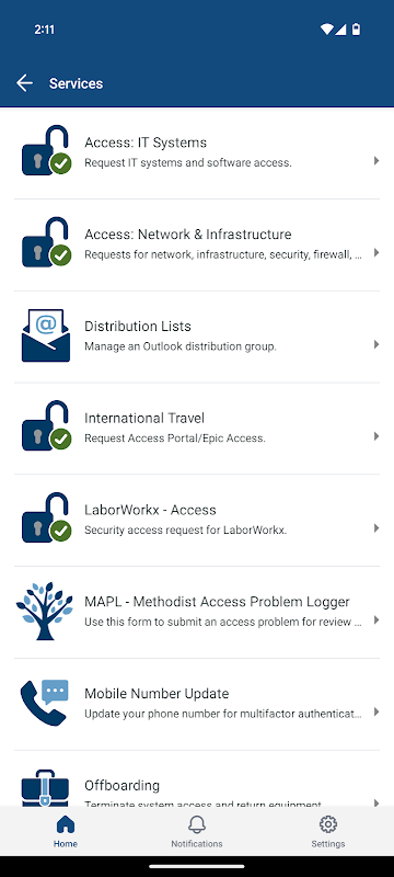 Acesso móvel ao portal de suporte de TI do Houston Methodist