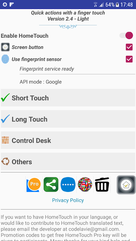 Versões Antigas de HomeTouch : Fingerprint touch action + home button