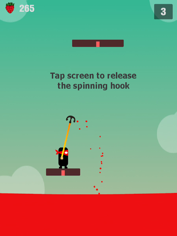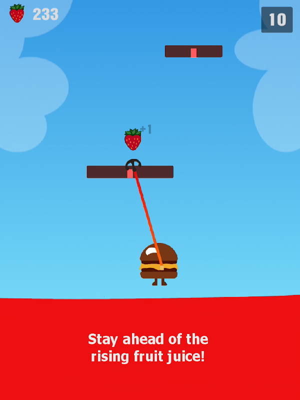 Toque na tela e solte seu gancho giratório. Tente se manter nas plataformas mais altas e ficar à frente do suco de frutas que sobe!