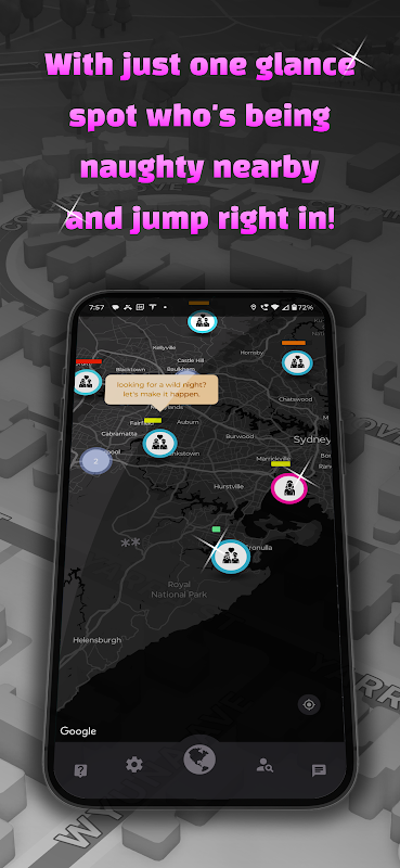 Descoberta baseada em mapa: veja instantaneamente quem está por perto. Cada alfinete no mapa representa alguém com preferências e interesses alinhados aos seus.