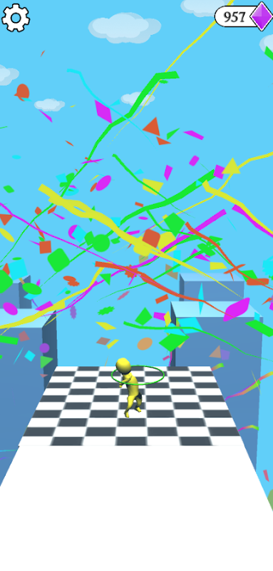 Tente atravessar os obstáculos sem deixar cair o bambolê!