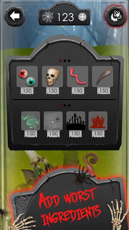 Fazer o cocktail único graças aos adesivos nos vidros. Obtenha todo adesivos coleção para se tornar o mais horrível monstro no grupo.