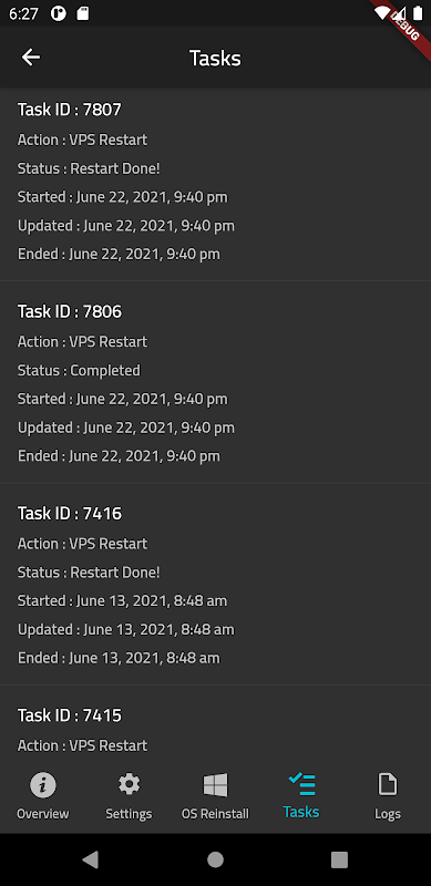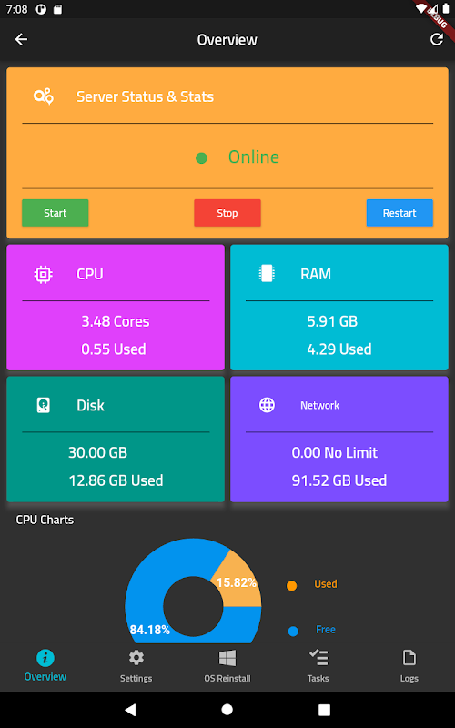 Aplicativo Android para usuários de Hostacks que desejam gerenciar seus servidores, reinstalar imagens e verificar estatísticas de qualquer lugar
