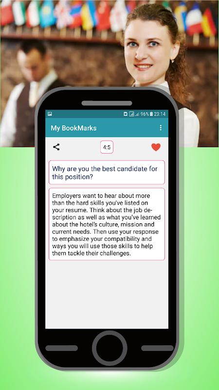 Este aplicativo ajuda para questões de entrevista de emprego de gerenciamento de Hotel e se preparar para respostas de pergunta de entrevista comum de gerenciamento de Hotel. Prepare-se para perguntas técnicas sobre entrevistas e vagas de emprego.