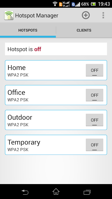 Hotspot Manager manages all WiFi hotspots you want to share with your family, friends and colleagues or to use in different places.