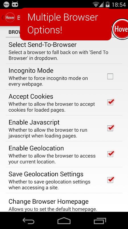 Whether it's viewing images of cats from reddit links, or opening articles from Google Now, Hover Browser is able to open and load the content quickly so you don't ever have to leave your current application.