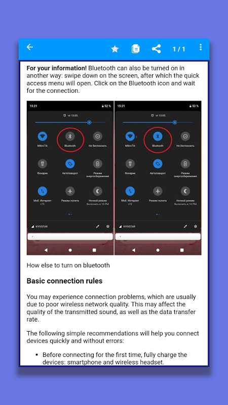 Em nosso aplicativo, você receberá instruções sobre como conectar fones de ouvido Bluetooth comuns e TWS separados. A instrução será universal, pois o processo de conexão é praticamente o mesmo dependendo do fabricante e modelo dos fones de ouvido.