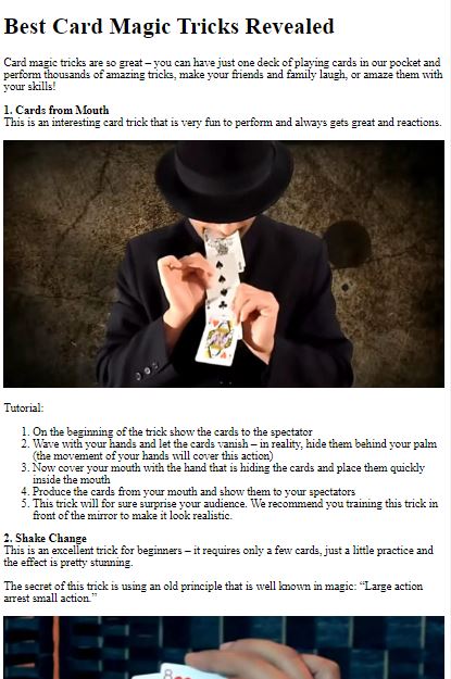 Se você sonha com o público deslumbrante em grandes etapas ou simplesmente deseja descobrir os segredos dos truques de cartas hipnotizantes, ""truques de cartas revelados"" é o seu companheiro final. Não perca a oportunidade de mergulhar no reino da magia, onde todo segredo que você descobre é um passo para se tornar um verdadeiro mágico.