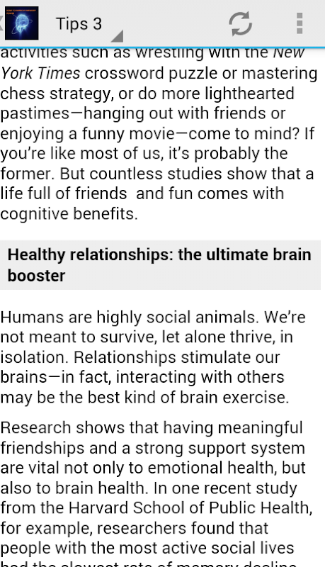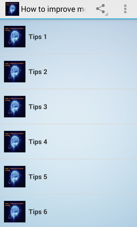 This application consist many tips about how to improve memory power .The tips is easy to be apply on your daily life.This application do not need internet connection to work.Thank you