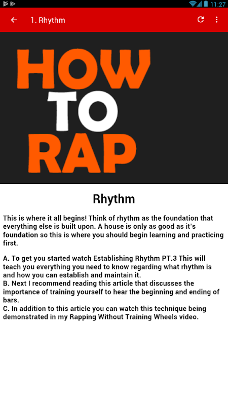 Our How to rap app has some great tips for you, beginners, to start rapping from something the best of all it is made in steps which you need to do to learn the technique freestyle rapping