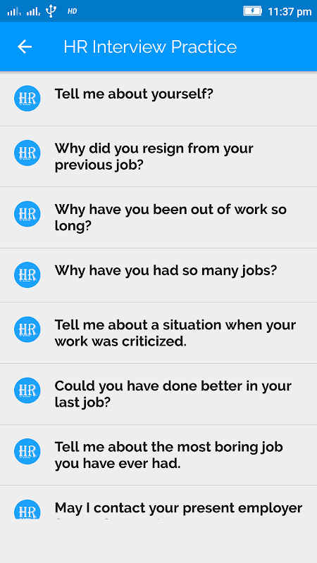 Apresentando aplicativo Entrevista Prática de RH com perguntas HR redondos mais discutidos e dicas de entrevista. Esta aplicação é o destino de um batente para todas suas perguntas HR entrevista.