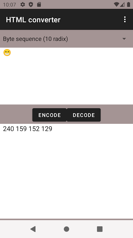 O aplicativo pode converter todos os caracteres de texto em sua representação numérica HTML.