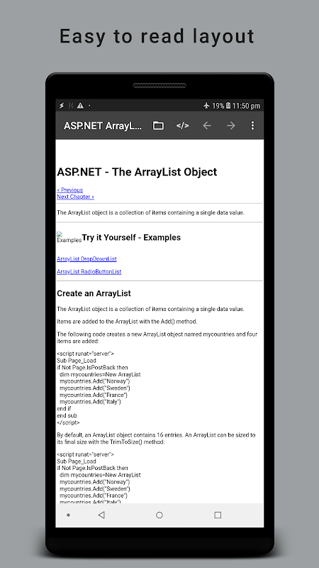 Leia arquivos HTML e páginas da Web salvas armazenadas no seu dispositivo.