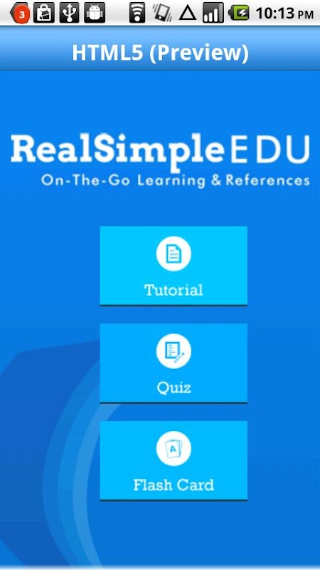 The full version of Application offers quizzes, tutorials and flashcards to help you learn HTML5