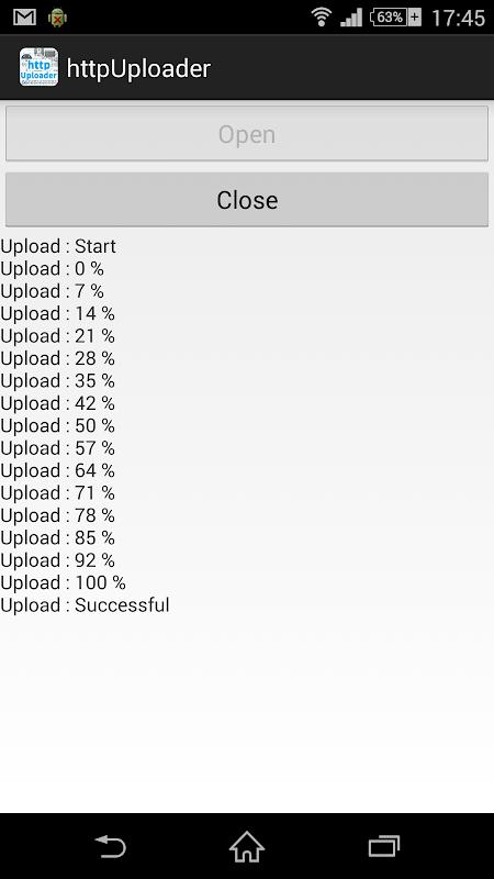 5.Androidの画面にUpload Successfulと出れば、アップロード出来ています。
