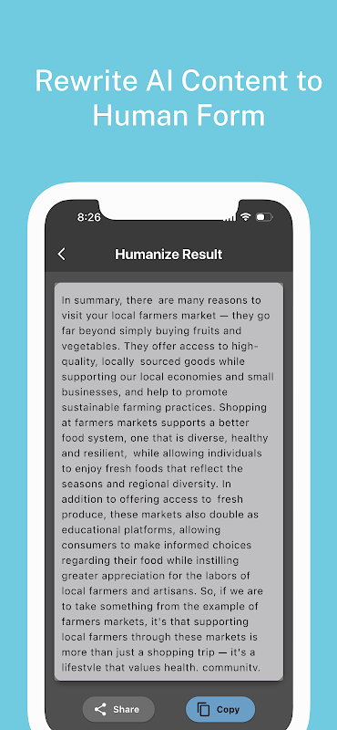 Converta seu conteúdo de texto gerado por IA em escrita autêntica e humana com Humanify – AI Humanize! Esteja você refinando documentos profissionais, criando conteúdo atraente ou verificando a influência da IA no texto, este aplicativo é o companheiro perfeito.