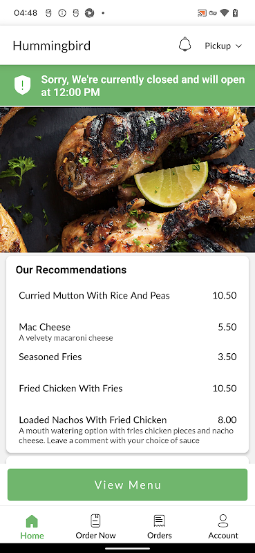 Satisfaça sua fome com o Hummingbird Lounge, seus especialistas locais em entregar refeições de dar água na boca. Nosso aplicativo facilita a exploração de nosso menu tentador e o pedido de seus favoritos com apenas alguns toques. Basta preencher sua cesta, finalizar a compra com segurança e optar por pagar em dinheiro ou cartão - o que for melhor para você.