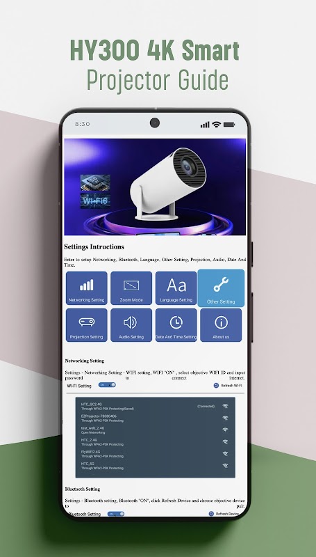 Com este aplicativo, os usuários podem entender melhor como usar o HY300 Smart Projector 4K e obter informações importantes sobre o HY300 Smart Projector 4K.