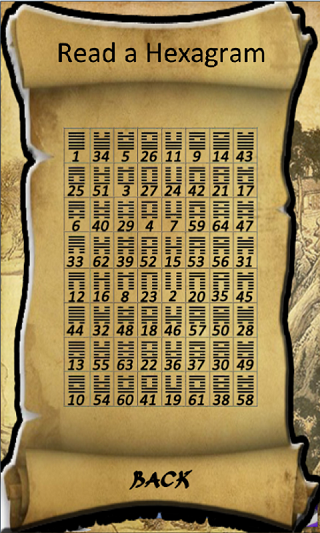With this application you can find out with a question, through the original hexagram , which is what is happening in your life at the time of consultation . With the complementary hexagram your will know what is the right way to go .
