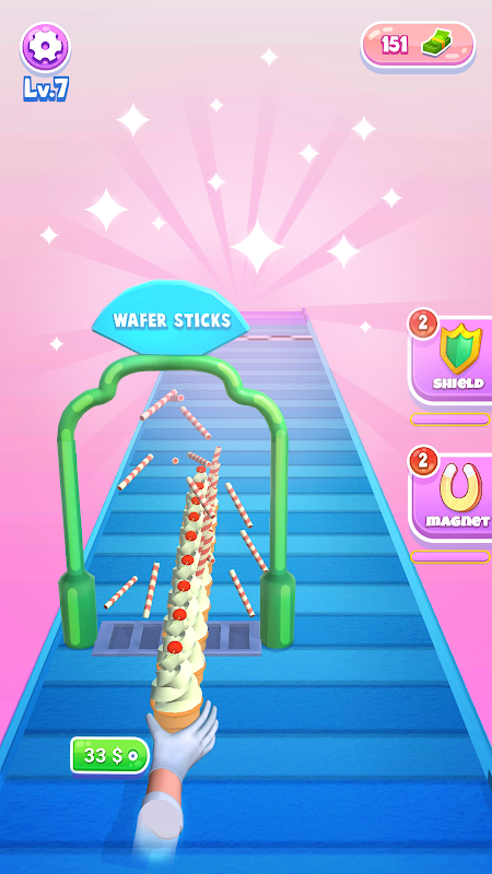 Ice Cream Stack é um jogo hipercasual em que você recebe casquinhas que correm pela esteira rolante e precisa completá-las com o creme ou gelato e cerejas. Mas certifique-se de que haja cortadores e outros obstáculos onde você precise ter cuidado. Prepare a melhor sobremesa congelada para o seu cliente e veja seu nível no final.
