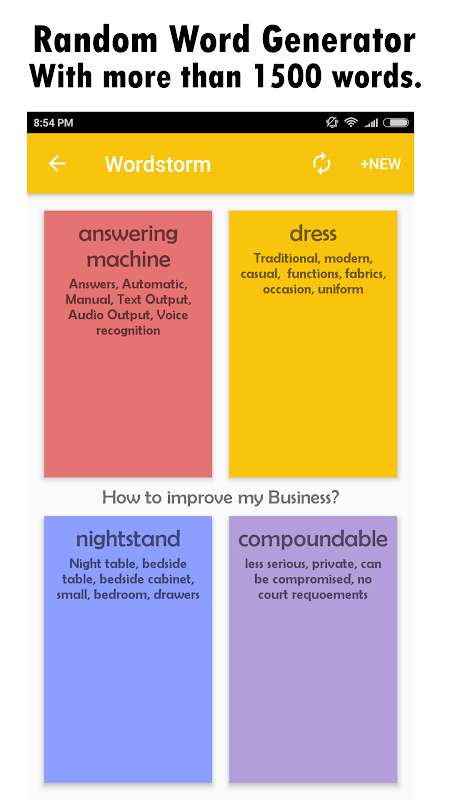 - WordStormer is a random word generator, that has more than 1500 random words from four different categories.