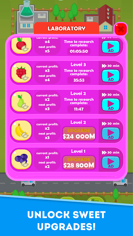 Produce the most juice at your idle farm! This farming simulator combines clicker and idle elements, so you can be productive while playing and while NOT playing.