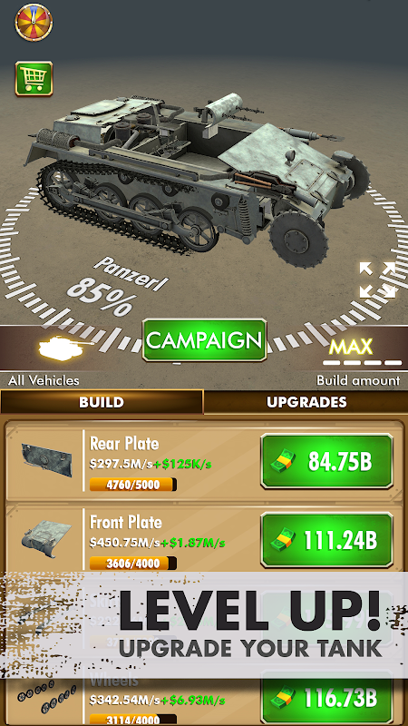 - Manage your very own fleet and upgrade your tanks to increase your Idle cash income