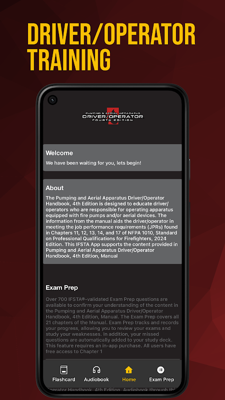 Adquira o Manual do Motorista/Operador de Aparelhos de Bombeamento e Aéreo, 4ª Edição, em áudio através deste aplicativo IFSTA. Todos os 21 capítulos são narrados na íntegra, totalizando 19 horas de conteúdo. Os recursos incluem acesso offline, marcadores e a possibilidade de ouvir no seu próprio ritmo. Este recurso requer uma compra dentro do aplicativo. Todos os usuários têm acesso gratuito ao Capítulo 1.