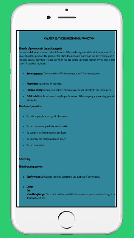 O aplicativo contém notas de estudos de negócios