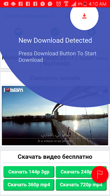 - Enter the video page press on Float Button at the bottom and chose the resolution that you want