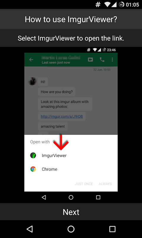 Além disso, o ImgurViewer pode abrir qualquer link com um caminho e uma extensão de imagem; portanto, ele tentará lidar com qualquer link de imagem.