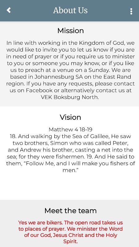 Em linha com o trabalho no Reino de Deus, gostaríamos de convidá-lo a nos informar se você precisa de oração ou se precisa que ministremos a você ou a alguém que você conheça, ou se você gostaria que pregássemos em um local em um domingo.