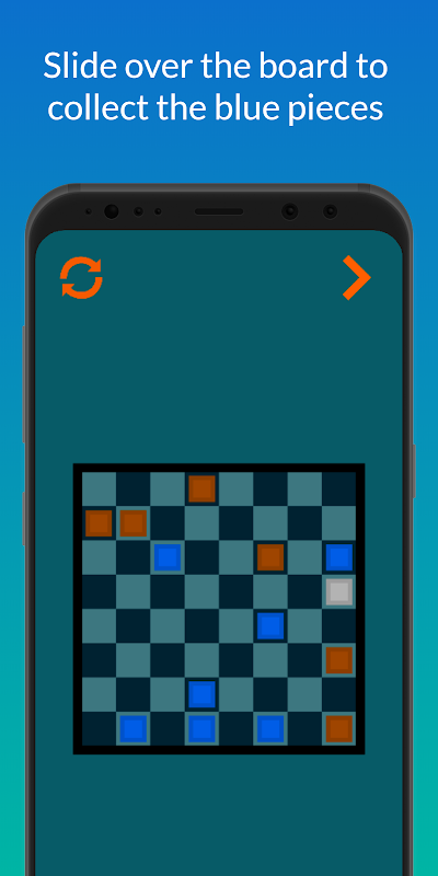 • Slide over the board to collect the blue pieces