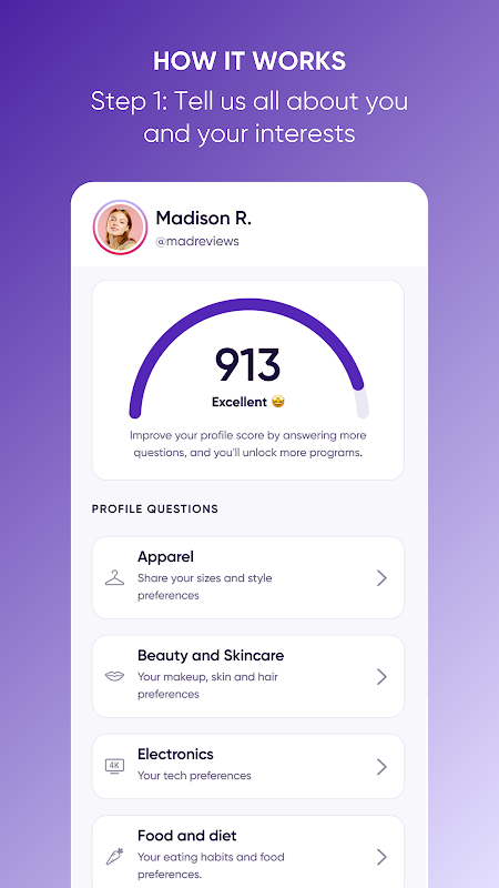 2. Complete seu perfil: Conte-nos sobre você e avalie produtos que você já experimentou.