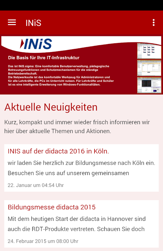 INiS! Die offizielle Smartphone-App ist da! Immer auf dem Laufenden sein über Veranstaltungen, Termine, Fotos und Neuigkeiten. Dank Push-Benachrichtigungen kommt jede Neuigkeit sofort aufs Smartphone. Den Kontakt zurück gibt es auch, einfach per Knopfdruck. Immer einen direkten Draht über diese App.