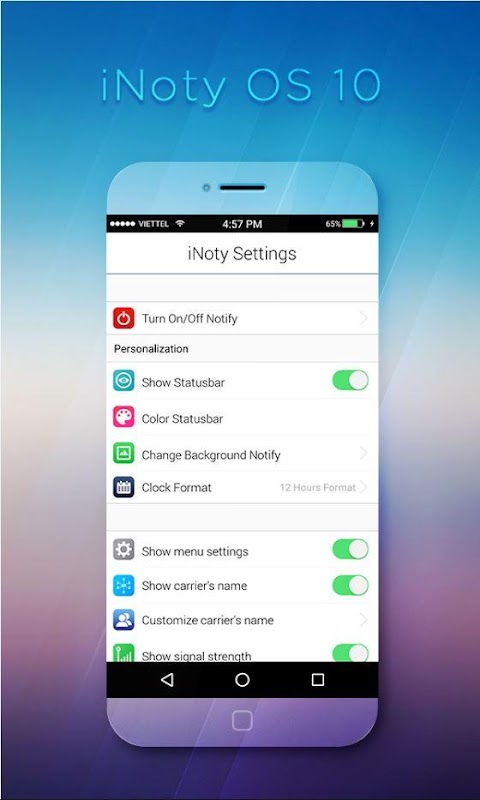 ⊹You can easily customize iNotify information on notification bar, you can change status bar color easily.