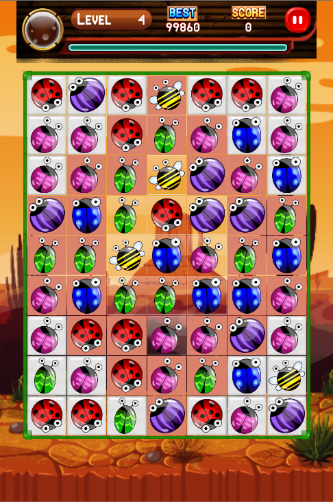 Jump on this adventure of finding Insect. New and improved match 3 game.