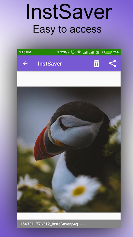 InstSaver app work as Fast downloader, Video downloader for Instgram, Photo and video downloader for Instgram, Saver of photo video of Instgram, Save photo/video and repost, Inst download, Saver For Instgram, Instant Save. This is good utility tool. Use latest version of app for better results.